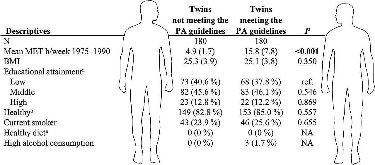 The investigators explored whether adhering to the World Health Organization’s physical activity recommendations influences mortality rates and susceptibility to genetic diseases. These guidelines recommend engaging in 150 to 300 minutes of moderate exercise or 75 to 150 minutes of intense workout each week. However, the research revealed that fulfilling these guidelines does not reduce mortality risks or modify genetic disease vulnerability. Notably, among pairs of twins who maintained the suggested levels of physical activity over a span of fifteen years, there wasn’t a noticeable statistical discrepancy in death rates when contrasted with those who were less physically active within the same sibling group.