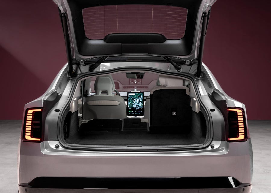 Underneath the back hatch, the ES90 offers 14.97 cubic feet of storage space which increases to 25.89 cubic feet once the rear seats lay flat for larger objects. Additionally, there’s a 0.78 cubic-foot front trunk located beneath the hood. This front compartment is roughly equivalent to the size of a small suitcase. large backpack , which may not be substantial, but acts as a handy storage space to stow a charging cord or roadside emergency kit neatly out of sight.